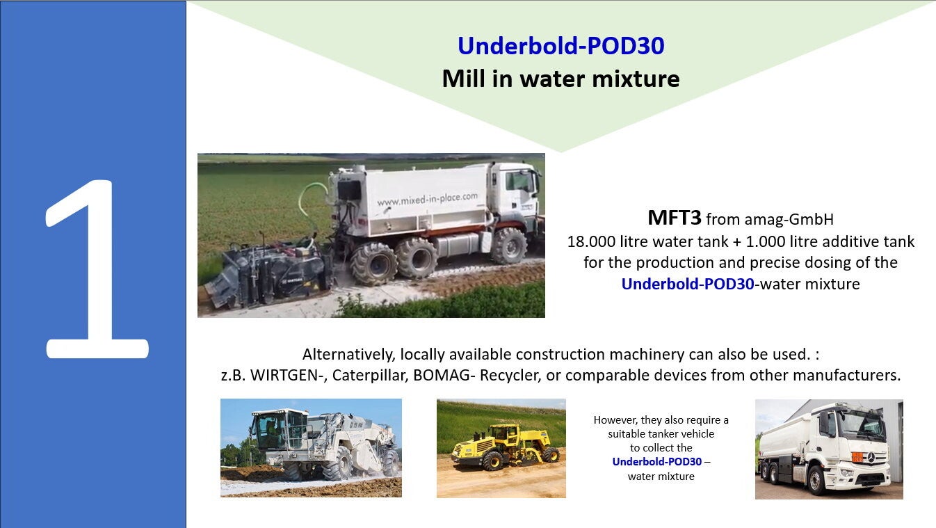 Compared to conventional stabilisation, the use of UNDERBOLD-POD30 does not require any special or additional equipment or systems.