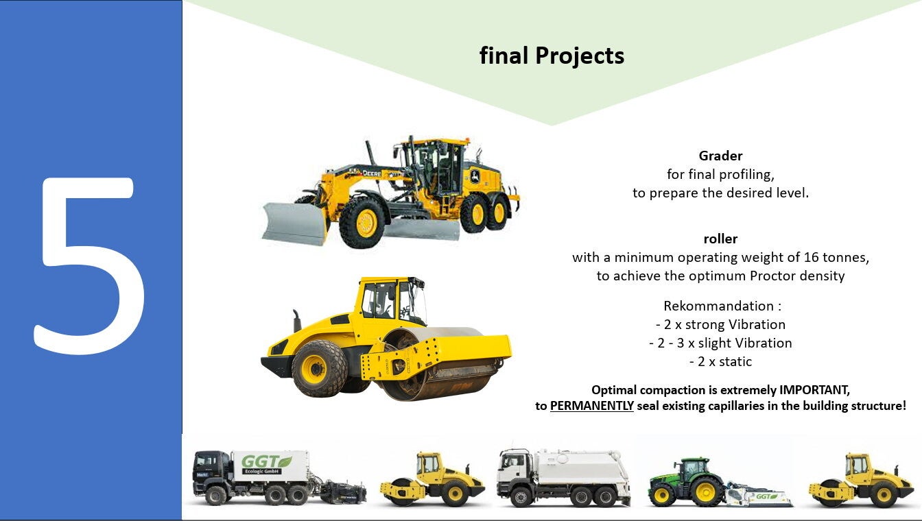 The optimum mixing ratio of the additive with the cement and the mineral mixture (soil or rock) is determined using the soil parameters to be tested and adapted to the client's specifications.